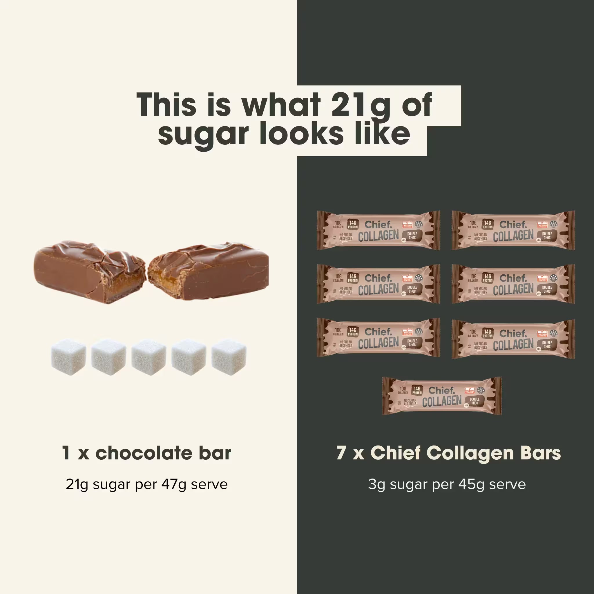 - A collagen protein bar that satisfies your sweet cravings while providing the essential nutrients