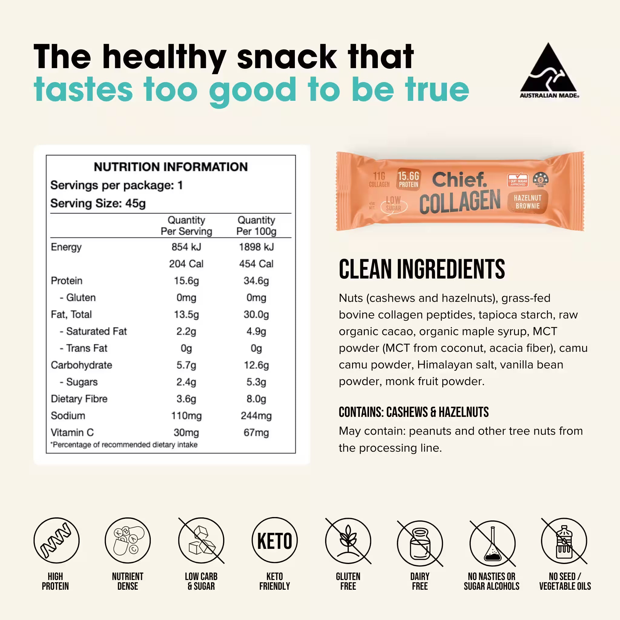 Chief Collagen Protein Hazelnut Brownie Bar 45g