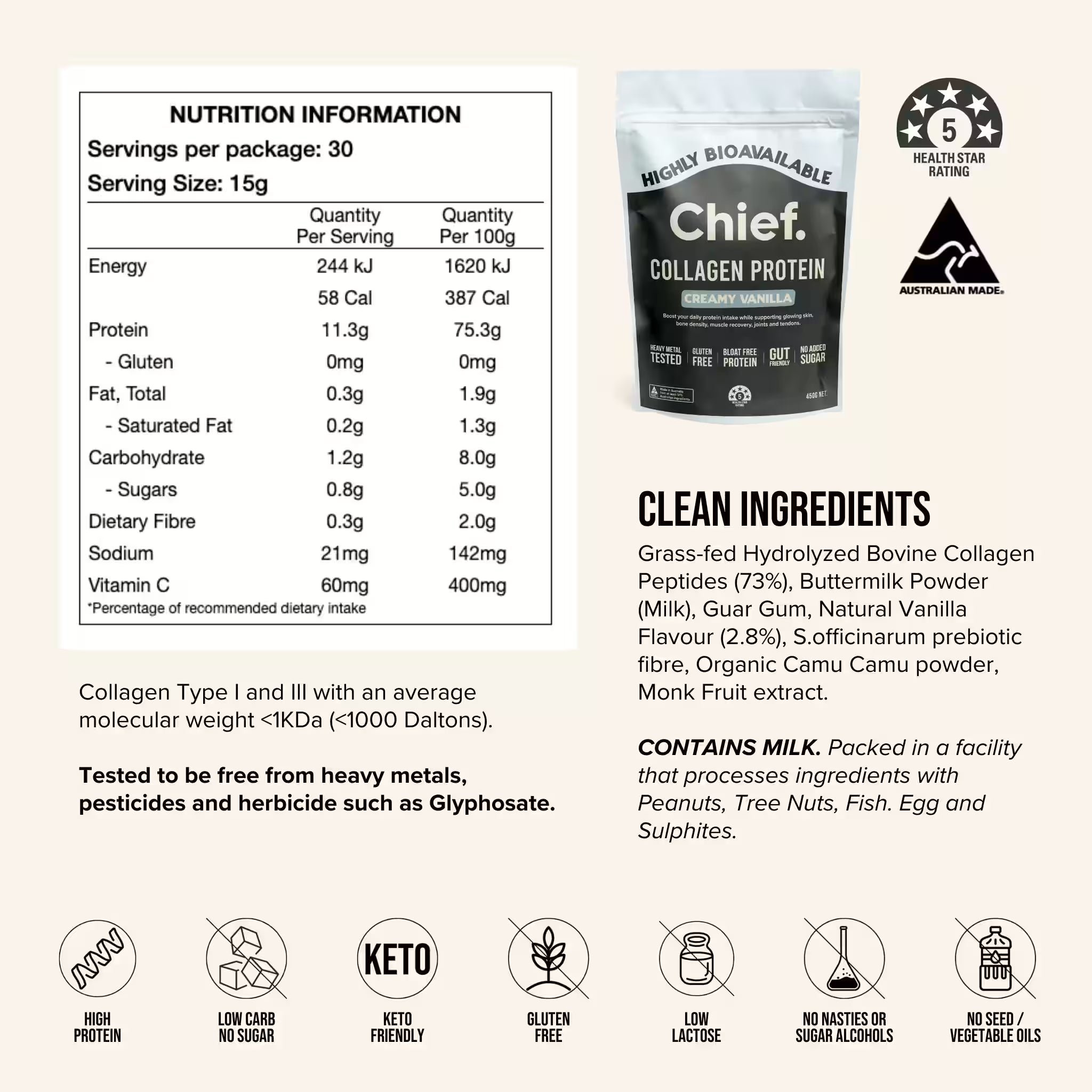 Chief Collagen Protein Powder - Creamy Vanilla 450g
