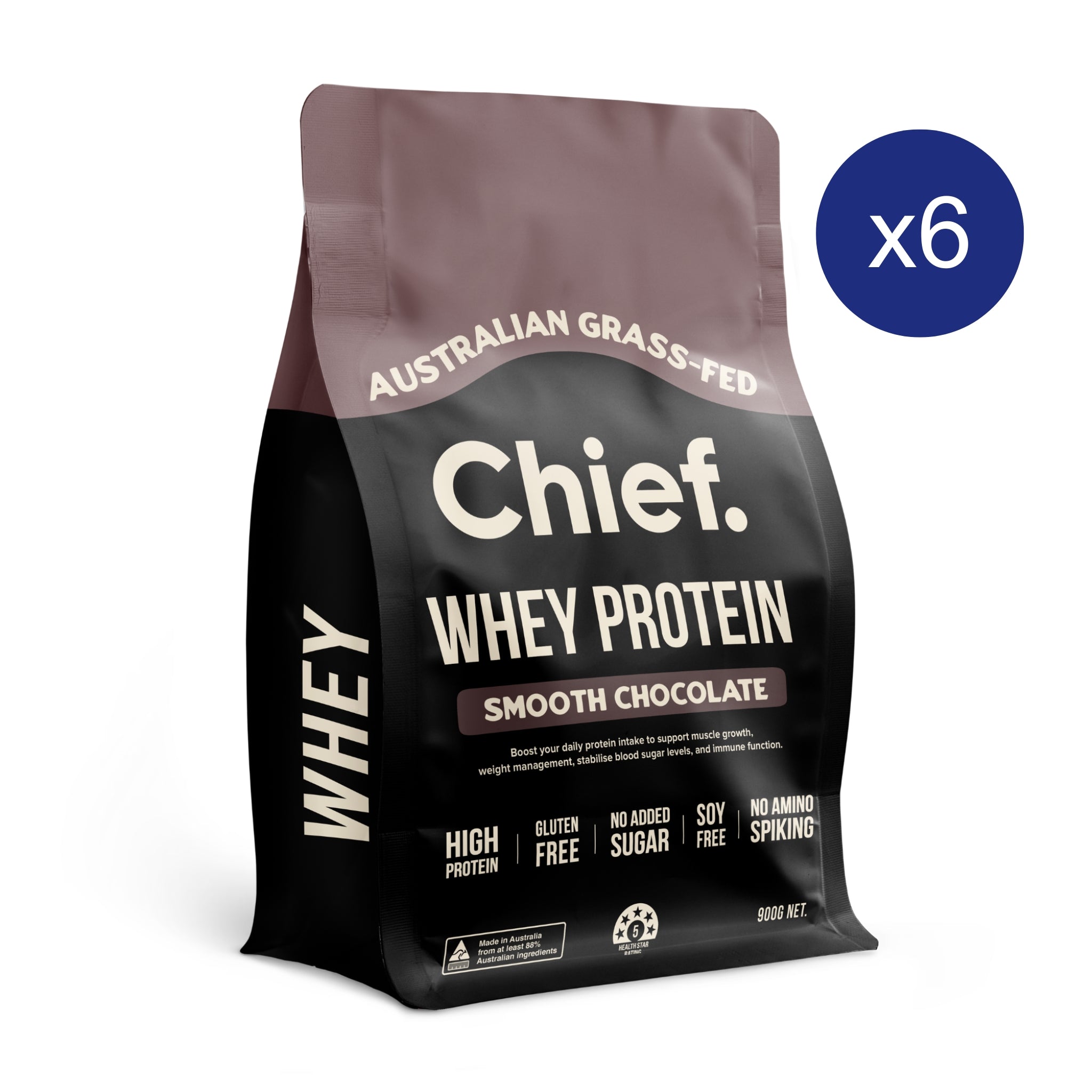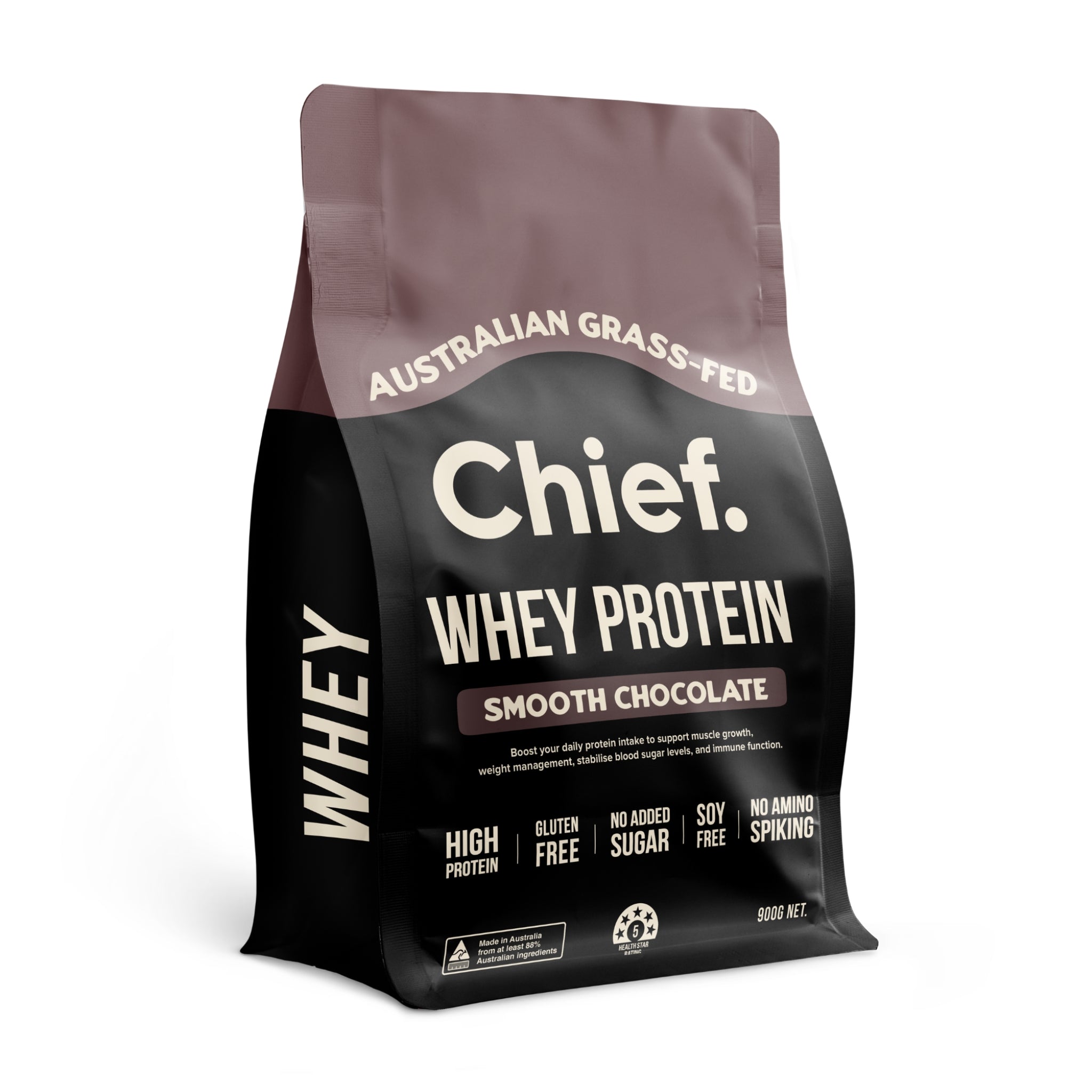 Chief Grass-Fed Whey Protein Powder in Smooth Chocolate blends clean nutrition with rich, natural cocoa flavour. Made from the milk of pasture-raised, grass-fed Australian cows, this premium grass-fed whey protein powder delivers a smooth, creamy taste without artificial flavours or sweeteners. It is ideal for those seeking a delicious chocolate protein powder that supports performance, recovery and everyday wellbeing.