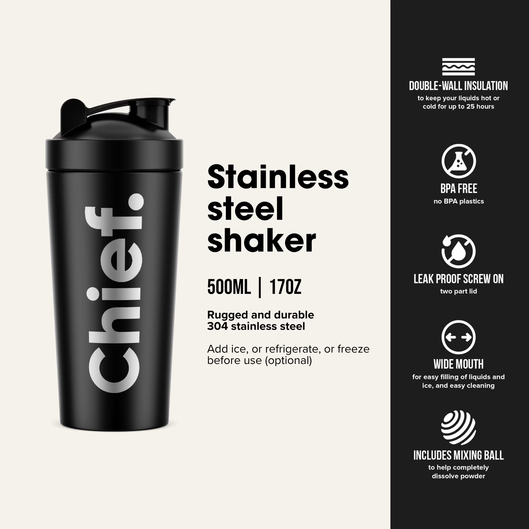 Chief Stainless Steel Protein Shaker 500mL