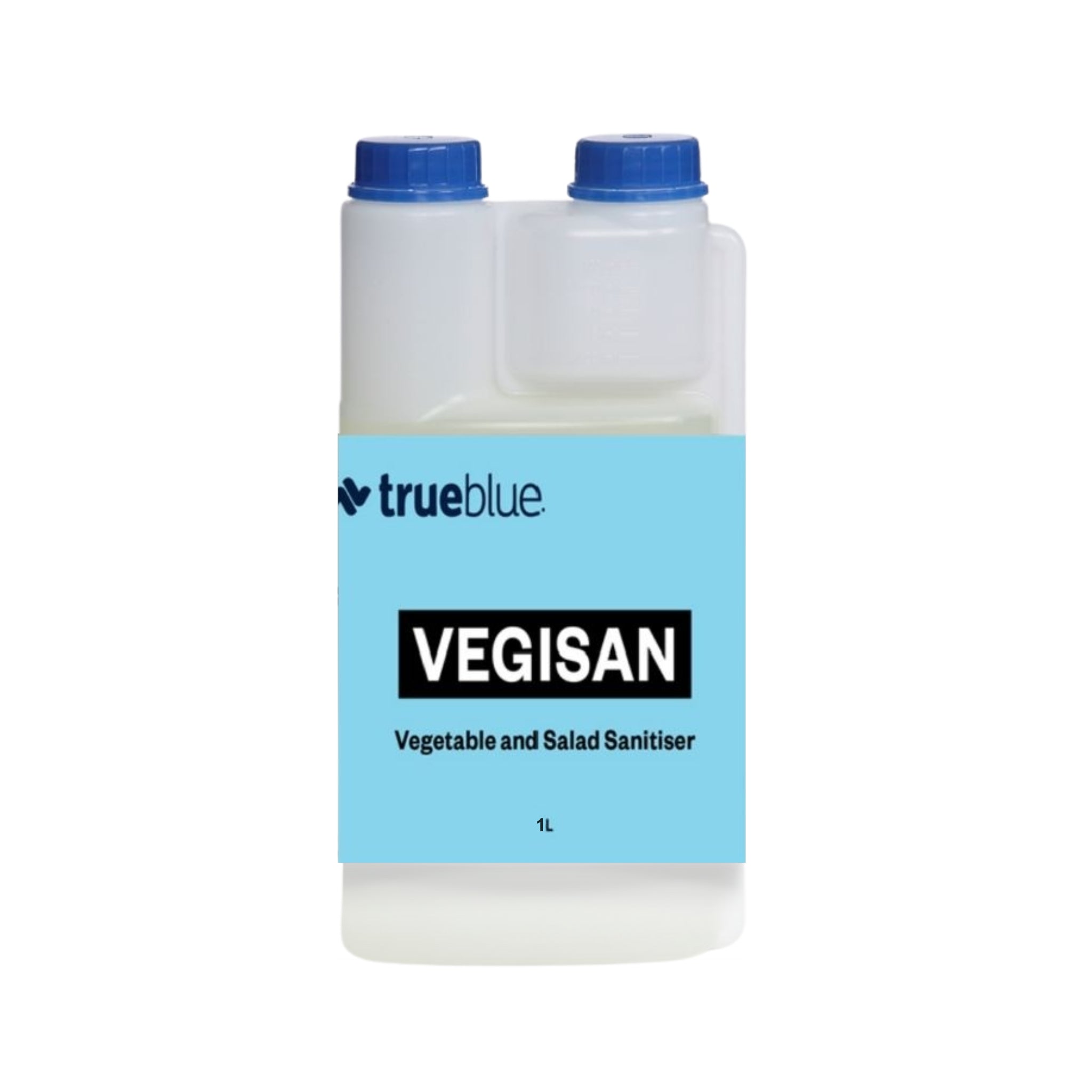- True Blue Vegisan is a powerful chlorinated sanitiser specifically designed to effectively sanitise vegetables and salads.